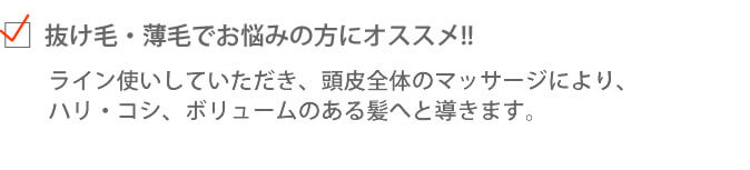 抜け毛・薄毛でお悩みの方へ。本格育毛メニュー。