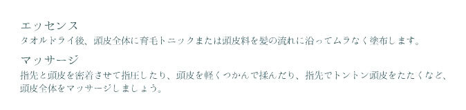 厳選成分を届けたい部分にダイレクトに届け、抜け毛を防ぎ、太く・強く・美しいハリコシ髪を育てます。