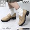 【返品交換不可】ローファー レディース 厚底 5cmヒール ビット 飾り 革靴 合成皮革 黒 ブラック 22.5-26.0cm No.3584 サンエープラスフ