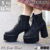 【返品交換不可】ブーツ レディース ハイヒール 厚底 サイドジップ レースアップ スクエアトゥ 合成皮革 2E チャンキーヒール 10.5cmヒー