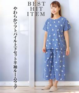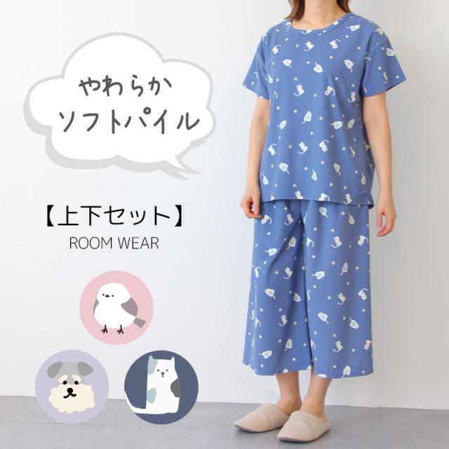 ルームウェア 上下セット レディース 半袖 パイル地 部屋着 パジャマ やわらか ソフトパイル ワイドパンツ Tシャツ ルームウエア 春 夏