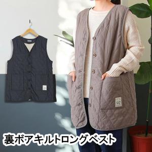 送料無料 裏ボア キルト ロングベスト レディース 羽織 ルームウェア チョッキ ボア 防寒 あったか 裏ボアキルト ロングベスト