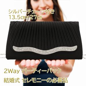 【送料無料¥1,500】結婚式 バッグ パーティー バッグ クラッチバッグ レディース 結婚式 二次会 チェーン付き 2WAY ラインストーンサテ