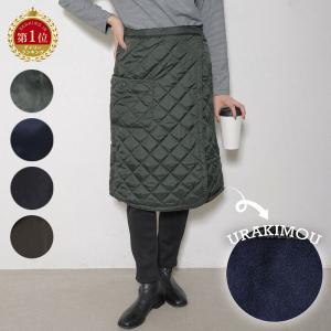 裏起毛 リバーシブル キルティング 巻きスカート レディース ひざ丈 あったか 防寒 中綿入り 2WAY スナップボタン付き 冬用 スカート 通