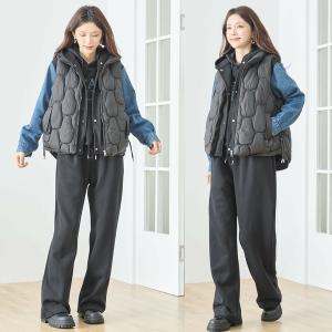 キルティング フード付き 中綿ベスト レディース 秋冬 軽量 あったか おしゃれ 体型カバー ドロスト付き 無地 カジュアル 上品 M-Lサイズ
