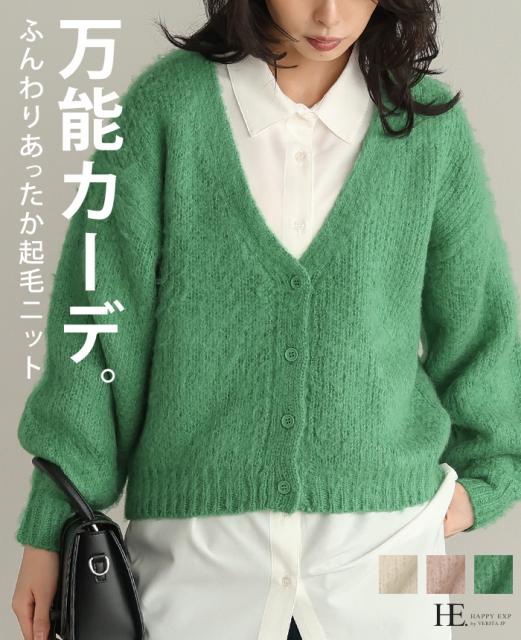[新作限定P10%×送料無料]プードルカーディガン カーデ カーディガン ニット 羽織り レディース トップス ボリューム袖 体型カバー 秋新