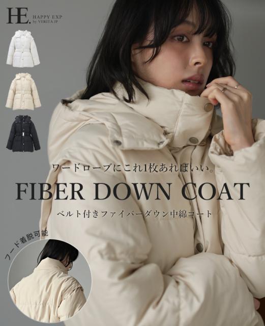 [新作限定P10%×送料無料]ファイバーダウン中綿コート ダウン キルト レディース アウター 長袖 ハイネック 防寒 あったか ベルト 2way