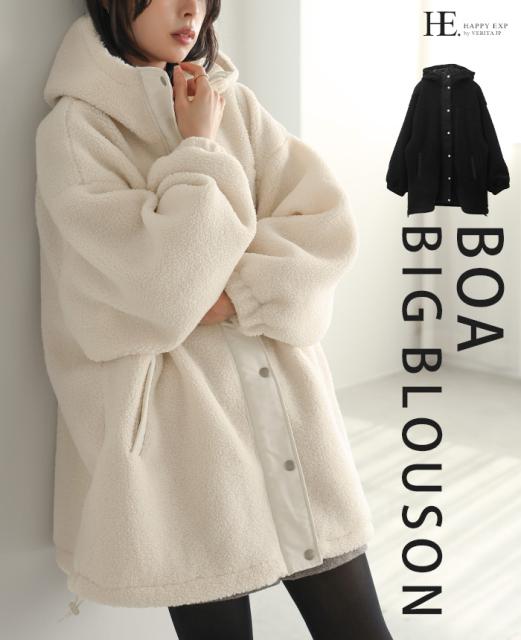 [新作限定P10%×送料無料]ボアビッグシルエット フード付ブルゾン レディース アウター ブルゾン フード 防寒 あったか ボア コート 体型