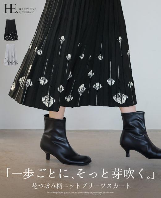 [新作限定P10%×送料無料]ニットプリーツスカート フレア 柄編み レディース ニット スカート ボトムス ミディアム丈 体型カバー ウエス