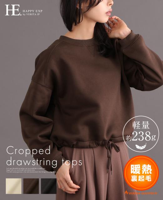 [新作限定P10%×送料無料]裾ドロスト裏起毛ショートトップス レディース 防寒 ショート丈 トレーナー プルオーバー ドロスト 体型カバー
