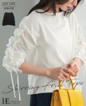[新作限定P10%×送料無料]袖シャーリングフリルトップス【メール便不可】