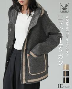 [新作限定P10%×送料無料]配色ニットパーカーカーディガン アウター 羽織り【メール便不可】