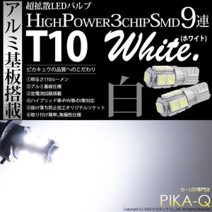 単 T10 LED バルブ 爆光 ポジションランプ アルミ基板 SMD9連 110lm ホワイト 2個入 3-A-5