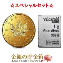 メイプル金貨 1g + スイス ヴァルカンビ シルバーバー 1g 金貨 純金 シルバー