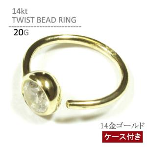 14K ツイストビーズリング 20G K14 リングピアス ボディピアス ボディーピアス 軟骨ピアス ヘリックス トラガス ルーク イヤーロブ 鼻ピ