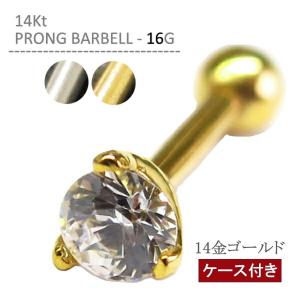 ボディピアス 14k 14金 軟骨ピアス 16G K14 つけっぱなし 金属アレルギー対応 片耳 軟骨 ピアス 14Ktプロングバーベル ホワイトゴールド