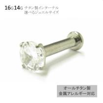 オールチタン ピアス チタン立爪ジュエルラブレット 16G 14G クリア ヘッド2mm 3mm 4mm 5mm 医療用チタン 金属アレルギー対応 つけっぱな