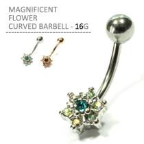 ボディピアス 16G マグニフィセントフラワーカーブドバーベル ボディーピアス カーブバーベル ヘリックス 耳ピアス へそピアス ルーク ス