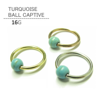 ボディピアス 16G ターコイズボール キャプティブビーズリング 内径8mm 10mm シルバー イエローゴールド ローズゴールド 天然石 ターコイ
