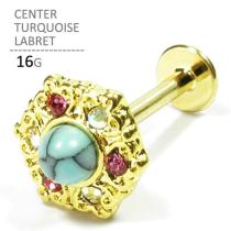 軟骨ピアス センターターコイズラブレット 16G ボディピアス ボディーピアス ラブレット イヤーロブ トラガス ヘリックス 六角形 耳ピア