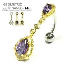 へそピアス ジオメタリックジェムネイブル 14G サージカルステンレス ジュエル 大きいジュエル ゆらゆら揺れるピアス トップダウン ボデ