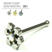 鼻ピアス 20G スノーフレークジェム ノストリル サージカルステンレス キラキラ 雪 結晶 クリスタル ボディピアス ボディーピアス 簡単装