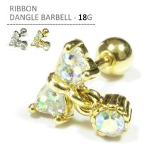 ボディピアス 18G リボンダングルバーベル 軟骨ピアス 耳ピアス リボン チャーム ゆらゆら きらきら ボディーピアス ストレートバーベル