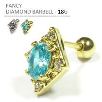 ボディピアス 18G ファンシーダイヤモンドバーベル 耳ピアス 軟骨ピアス ひし形 菱形 大粒 ボディーピアス ストレートバーベル ステンレ