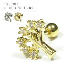ボディピアス 18G ライフツリージェムバーベル 耳ピアス 軟骨ピアス キラキラ 木 樹木 ツリー ボディーピアス ストレートバーベル ステン