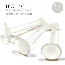 透明ピアス 3個パック セット プッシュピンリテーナー 16G 14G バイオフレックス クリア トラガス 軟骨ピアス ヘリックス 口ピアス 舌ピ