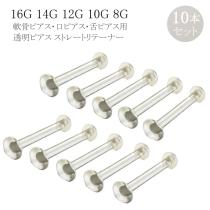 透明ピアス 10個パック セット ストレートリテーナー 16G 14G 12G 10G 8G クリア ピンク トラガス 軽い 拡張 軟骨ピアス ボディピアス ヘ