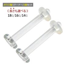 長さが選べる 2個セット ガラスリテーナー 透明ピアス 両耳用 18G 16G 14G 長さ7mm 9mm 11mm ガラス製 ボディピアス アス オーリング付き
