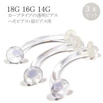 透明ピアス カーブドリテーナー 3個パック セット 18G 16G 14G クリア ボディピアス ボディーピアス バナナ 軽い 透ピ シークレットピア