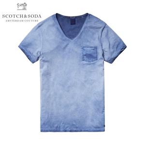 スコッチアンドソーダ Tシャツ 正規販売店 SCOTCH&SODA 半袖Tシャツ VネックTシャツ シャツ Oil washed shortsleeve tee with chest poc