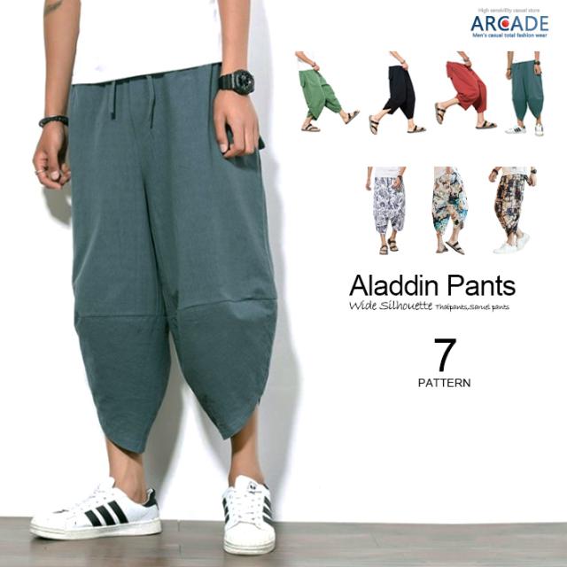 サルエルパンツ メンズ アラジンパンツ メンズ ゆったり クロップドパンツ エスニック ワイドパンツ 大きいサイズ 夏新作 バルーンパンツ