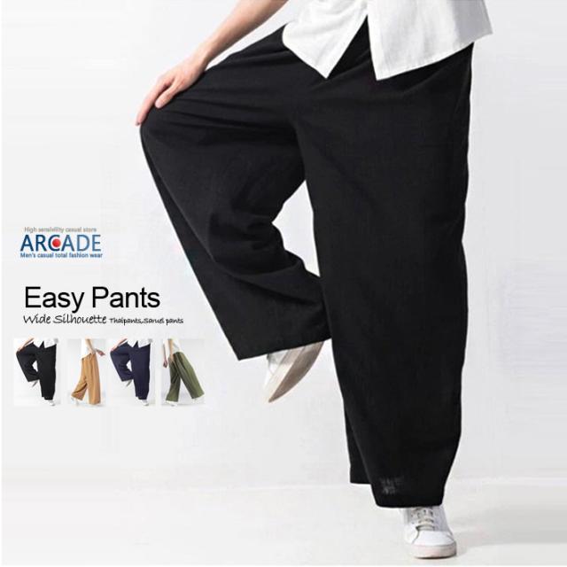 ワイドパンツ メンズ 新作 イージーパンツ ワイドシルエット カラーパンツ ジャストカット 薄手 アンクルパンツ ARCADE アーケード