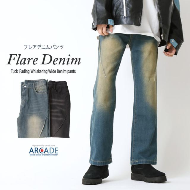フレアデニムパンツ おしゃれメンズ デニムスタイル ブラックデニム ブルーデニム