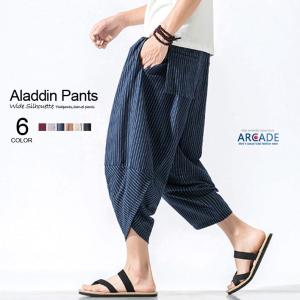 サルエルパンツ メンズ サルエルパンツ タイパンツ ストライプ アラジンパンツ メンズ ゆったり ウェストゴム エスニック ワイドパンツ