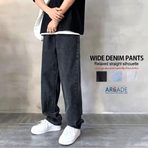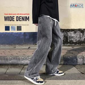 ワイドデニム メンズ 秋新作 ジーパン ワイドパンツ イージー ルーズストレート ブルーデニム ブラックデニム