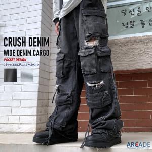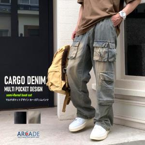 カーゴデニムパンツ メンズ マルチポケット カーゴパンツ ジーンズ ジーパン ワイドカーゴパンツ ワイドデニムパンツ