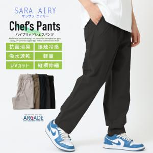 抗菌消臭 接触冷感 ワイドパンツ メンズ シェフパンツ UVカット ストレッチ イージーパンツ 黒 ブラック 快適 サマーパンツ