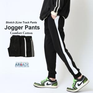 トラックパンツ メンズ ジャージ ジョガーパンツ ラインパンツ ソリッド カチオン 2本ラインジョガーパンツ