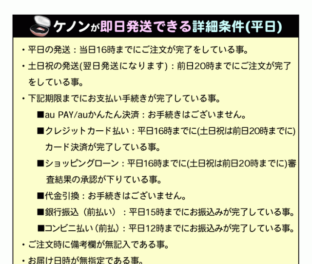 ケノンの即日発送の詳細(平日)