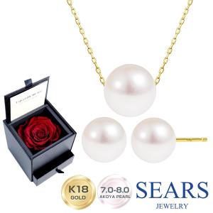 シアーズ ネックレス レディース K18 一粒 あこや真珠 スタッド ピアス セット プリザーブドフラワー 薔薇 あこや真珠 ローズ ボックス