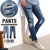 デニムパンツ メンズ スキニー ダメージ加工 リペア ペンキ ストレッチ スリム【ペンキリペアダメージスキニーデニムパンツ】 aa-1963