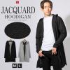 フーディガン カーディガン メンズ レディース ロング丈 フード付き 春 夏 秋 無地 ガウン 黒【ジャガードロングフーディガン】 aa-3450