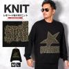 ニット セーター メンズ レオパード ヒョウ柄 豹柄 星 スター ロゴ 貼り付け おしゃれ 古着系 黒【レオパード貼り付けニット】 aa-3799