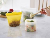 スマイルキッズ ふたがトングになる保存容器 350ml 2個組 ミントブルー・サーモンピンク 大 (保存 ボックス型でスタッキング可能 電子レ