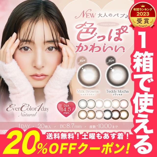 ★20%OFFクーポン★【送料無料/土曜もあす着】エバーカラーワンデーナチュラルモイストレーベルUV【1箱20枚入】 新木優子 カラコン 度あ