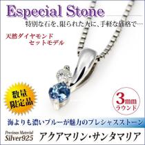 アクアマリン サンタマリア 送料無料 シルバー925 誕生石 ペンダント ネックレス 脇石ダイヤモンド ツインストーン チェーン 付[宅配便]